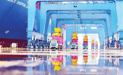 晨曦初照,万吨巨轮往来如织,点亮渤海湾的璀璨明珠——天津港。昔日的淤泥浅滩,如今已是世界航道等级最高的人工深水港;俯瞰港区,泊位星罗棋布,昼夜轮转,全年无休。因海而生,向海图强;天下港口,津通世界。志在万里的天津港,汇聚港产城融合发展的强大合力,向着世界一流的智慧港口、绿色港口奋楫笃行,不断释放京津冀“海上枢纽”的无限潜能。