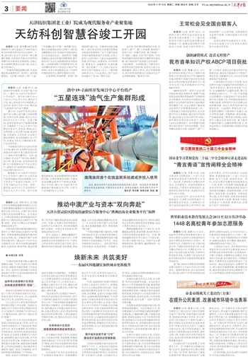 近年来,纺织集团贯彻落实市委、市政府“三新”“三量”工作部署,聚焦资产经营与老厂房提升改造,着力构建“一谷、两园、三基地、五坊”资产格局。“天纺科创智慧谷是纺织集团实施转型发展战略、着力推动资产经营进入快车道的一个成功案例。未来园区除了不断优化升级看得见的空间环境,还将向入驻企业提供融资、进出口贸易、设计等增值服务,把天纺科创智慧谷打造成南开区产业发展新地标。”葛传兵介绍。