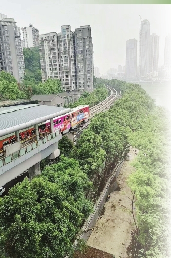 我生长于北地,按说是不太习惯雨的缠绵的,但2024年夏,当我来到重庆,走在渝中飘飘摇摇的微雨中,我的心情却是美妙的,这不紧不慢的雨不仅中和了西南大地地表的燠热,亦仿佛是渝中迎接我的特别方式,轻柔且贴心。夏天的雨,可以杀暑,可以润禾,也可以令人陡生浪漫情致。恰好时间充裕,于是果断改变行程,由江北机场直奔位于渝中的李子坝轻轨站。一路上耳机里单曲循环的都是那首《李子坝轻轨二号线》,据说这是一首在雨中创作出的乐曲,优美的旋律和着嘉陵江上空的雨声,如梦似幻。我到达的那一刻,一趟轻轨列车正缓缓驶入李子坝轻轨站台。