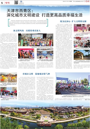 文润西青,幸福满城。文明创建工作以满足人民日益增长的美好生活需要为出发点和落脚点,把群众满意作为第一标准,将“创建为民、创建惠民、创建利民、创建靠民”的理念真正落实落地。坚持以文化人、以文惠民、以文润城、以文兴业,在潜移默化中培育滋养城市文明,用精神文明“软实力”夯实高质量发展“硬基础”,为推动经济社会高质量发展汇聚起强大精神文明力量。通讯员 梁宇