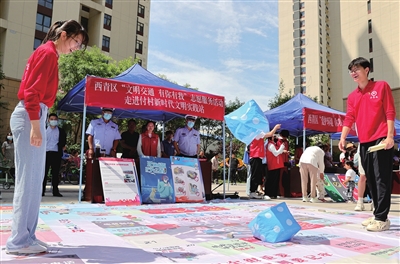 “下列哪种行为违反了文明条例?”“在外旅游时应当遵守哪些规定?” 中北镇新时代文明实践所举办的“双条例”宣传月活动暨“争做文明有礼天津人”趣味知识竞赛在中北永旺购物中心激情开赛。吃到恰好、餐后打包;开车让人、走路看灯;垃圾不落地、遛狗要拴绳;游大千世界、做文明游客……于细微处照见文明,聚焦市民文明素养提升,制定印发“文润西青 有礼先行”工作方案,推出“出行有礼·礼让最美”等“十礼十美”宣传主题,以文明培育塑造道德品质,以规范管理培养文明习惯。