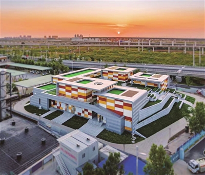 天津院在设计“河谷变电站”总体布局时,将主变压器室分成四组,并立设置,对称布局,形成规整有序的建筑体量组群;其余相对较低的房间填充其中,满足变电站工艺要求,形成合理布局,同时与地形完美结合。在景观造型方面,天津院选取绿色山谷和传统园林长廊的设计理念,将中国古典园林和建筑以现代手法转译,用“造景”的设计理念,置入绿谷,将部分建筑隐藏,立面消失,被绿化所覆盖,建筑与场地融为一体;通过丰富屋顶造型,虚实呼应、错落有致,轻盈飘逸突出“廊桥翠谷”概念,让自然生态与能源建筑在山和谷之间共生并存。