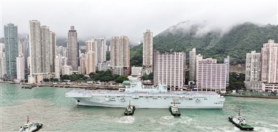 图为海军海南舰在香港招商局码头顺利靠泊。