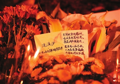当天晚上10时多,南开大学迦陵学舍门前,陆续有学生从不同的方向自发前来,会集于此,献上菊花等寄托自己哀思的物品后,鞠躬志哀,静静伫立, 向着寒夜中的迦陵学舍,默默哀悼:“叶先生, 一路走好!”