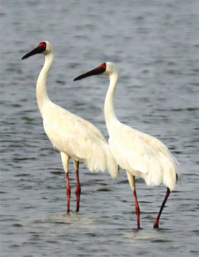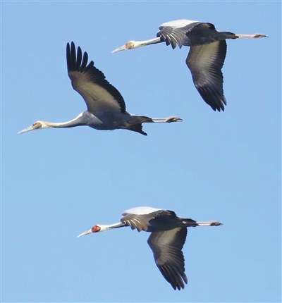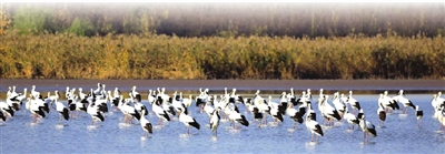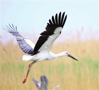 我市湿地内的东方白鹳种群。