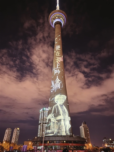 本报讯(记者 仇宇浩)11月25日晚,“送别叶嘉莹先生”天塔主题灯光秀举行。在两个小时里,“掬水月在手,诗径满清芬”“遗音沧海如能会,便是千秋共此时”“便在天上吟人间”“诗教永传”等5幅画面,轮番点亮塔身,寄托浓浓哀思。