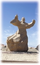 想象中的阳关应与玉门关一样,远远望去不过是荒漠中的一“小土堆”。事实上,阳关景区很大,位于敦煌市区西南约70公里处的古董滩。进入景区后首先看到的是阳关博物馆,建筑总体呈仿汉城堡式。馆内中轴线以博物馆正门城楼、张骞像、八卦台、功德亭、都尉府为标志,左右建筑群对称分布,其中的两关汉塞厅和丝绸之路厅内的展览系统梳理了阳关的建立及其发展史,是了解阳关的珍贵资料。在博物馆城楼后门处则是诗人王维的雕像。我出城门时,恰好遇一游客在王维雕像前感情充沛地诵读那首《渭城曲》,也算是非常应景的一个景点了。