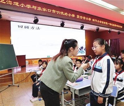 近日,河西区上海道小学举办“融合·跨越·联通”课程基地建设与优秀学科组培育研讨活动,展示该校在跨学科融合以及课程思政研究等方面取得的成效。来自我市宁河区、武清区、蓟州区、北辰区四区手拉手协议校以及河北省张家口的部分校长和老师们共同参与。活动还面向甘肃省平凉市崆峒区和庄浪县协议校进行线上直播,促进教育优质均衡发展。