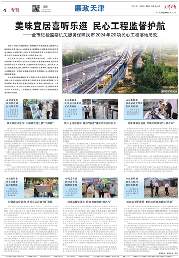 海河旅游观光带无障碍环境改善提升项目,是我市2024年20项民心工程中48项具体任务之一,也是市纪委监委驻市民政局纪检监察组监督检查的重点项目,“我们多次深入项目现场,围绕工程质量、施工安全、廉洁风险等强化监督检查,确保为老幼和残疾群众体验海河之美带来实实在在的便利。”驻市民政局纪检监察组负责同志说。