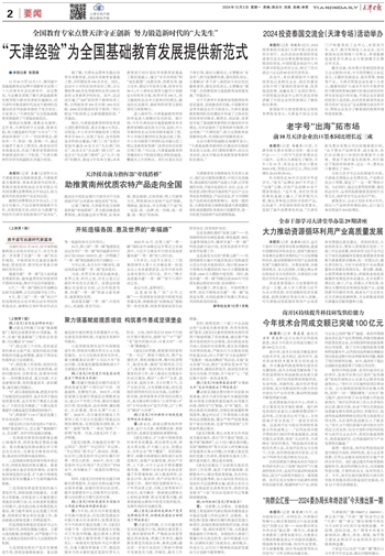 11月30日至12月1日,第四届中国基础教育论坛暨中国教育学会第三十六次学术年会在津举行。会议期间,与会嘉宾详细了解天津基础教育发展历程与教学改革的实施路径,对天津科学推进新时代高水平教师队伍建设的系列创新举措给予充分肯定。大家表示,“天津经验”为全国基础教育发展提供了可借鉴的新范式。