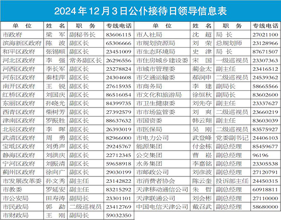 鉴于活动期间拨打热线电话的市民较多,如遇到占线请您不要着急,您还可以选择随时拨打“天津12345政务服务便民热线”进行咨询、求助、投诉、举报和提出意见建议。已进入诉讼、行政复议、信访复查复核等法定程序的事项不在“公仆接待日”活动的受理范围,请您支持理解,并把宝贵的时间留给更多市民朋友。