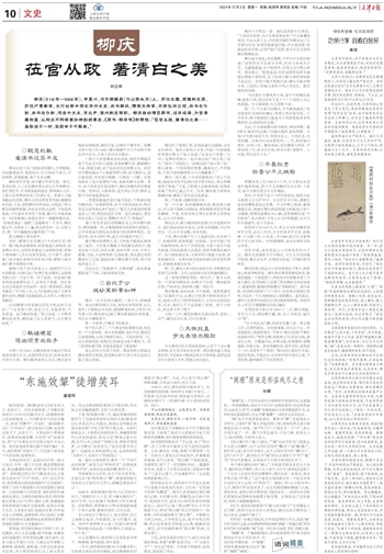 “生于河东名门柳,昂首乱世傲王侯。晋公邀入伙,泾渭明清浊。决狱悬秦镜,自比汉于公。奸佞瑟瑟抖,贵戚俱敛手。”《周书·柳庆传》给予柳庆很高的评价:“束带立朝,怀匪躬之节;莅官从政,著清白之美。并遭逢兴运,各展志能,誉重搢绅,望隆端揆,非虚云也。然庆畏避权宠,违忤宰臣,虽取诎于一时,实获申于千载矣。”柳庆的仕途经历丰富,他清忠亮直,才能出众,在官场中坚守清白之美,不畏权势,最终赢得了历史的赞誉。