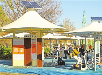 近日,东丽区首个室外智能健身房在东丽广场内亮相,室外智能健身房设有体质测试和锻炼器材等区域,健身者可以通过手机小程序在后台实时查看运动数据,量身定制运动计划。