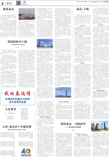 如今,他已进入不惑之年。四十年如同一瞬,却足以让一片土地脱胎换骨,让一个梦想照进现实。站在泰达这片充满活力与希望的土地上,回望他的成长,好似在和一个挚友对话,不觉已泪湿眼角——那是对泰达深深的自豪与眷恋……