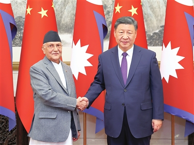 习近平赞赏奥利长期坚定致力于中尼友好事业,指出中国和尼泊尔是山水相连的好邻居、好朋友、好伙伴,两国始终真诚相待、相互尊重、相互支持,双边关系保持健康稳定发展。明年是中尼建交70周年。中方把中尼关系置于周边外交的重要位置,愿同尼方秉持建交初心,巩固传统友谊,推动中尼面向发展与繁荣的世代友好的战略合作伙伴关系取得新的更大发展。