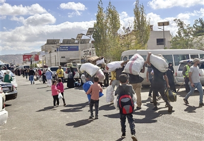 图为在叙利亚与黎巴嫩边境的佳迪达·亚布斯口岸拍摄的流离失所者。 新华社发