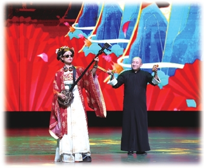 非遗音乐大三弦代表性传承人、天津音乐家协会会员褚琪桂梓和天津相声演员、马六甲徒弟郝梦春共同演绎新国潮。