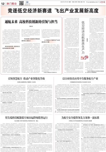 党的二十届三中全会提出,深化综合交通运输体系改革,发展通用航空和低空经济。低空经济作为提升新质生产力的重要领域,通过高科技主导、高效能运营展现出对高质量发展的强大驱动力。中国民航大学凭借在民航教育领域的综合优势,在发展新质生产力上勇争先、敢作为,积极肩负起在培育和发展民航新质生产力过程中的重要使命与责任。近年来,利用学校在科技创新和人才培养方面的优势,持续打造低空经济创新发展新高地。
