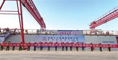 日前,由中铁十八局承建的新建合武高铁1标项目首榀预制箱梁在项目一分部麻城制梁场顺利浇筑完成。