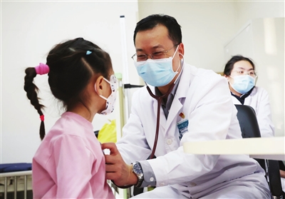 韩耀巍在给患儿诊治。 摄影王倩