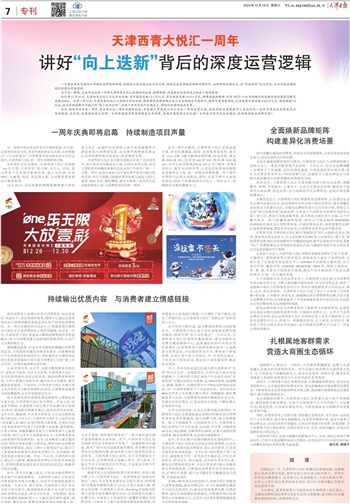 在全面规划升级中,天津西青大悦汇还将重点进行商户资源联动,秉持创新与服务理念,在重大市场营销节点中扶持商户、与品牌共创,稳定经营,引导城市潮流风向,不断挖掘商业与品牌共同发展的多种可能。