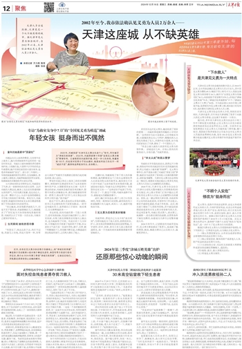 近日,在各区见义勇为协会推介的基础上,经“津城百姓英雄”事迹推介活动联席小组对推介事迹先进性、典型性等方面进行综合评定后,推介出2024年第三季度“津城百姓英雄”。记者走近他们,用笔墨还原那些惊心动魄的瞬间。