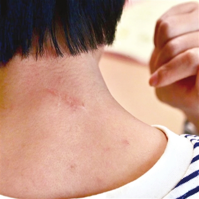 图为刘威后脖颈上留下的疤痕。