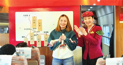 昨天是津兴城际开通运营一周年,铁路天津客运段在G8874次列车上举办了一场别开生面的庆祝活动。 通讯员 曹冬齐 本报记者 张磊 摄