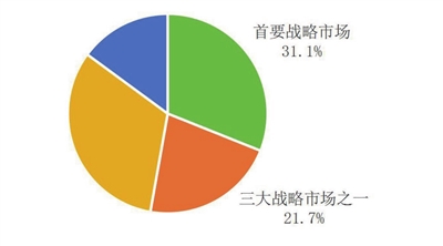 《报告》显示,超五成受访外资企业反映中国是其前三大战略市场之一。其中,31.1%的受访外资企业认为中国是近期全球投资计划中的“首要战略市场”,21.7%的受访外资企业表示“中国是三大战略市场之一”(如图10)。