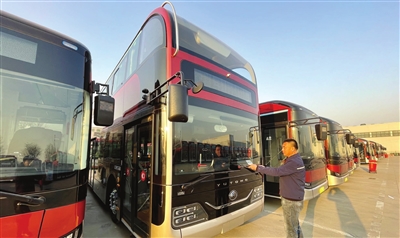 为让新双层公交早日与市民见面,虽然天气寒冷,工作人员依然加紧车辆调试。“目前这批新车已经完成了车辆上线检测,我们正加快进行车内服务标识张贴、刷卡机安装、车载智能系统调试等工作。”陈景楠表示。