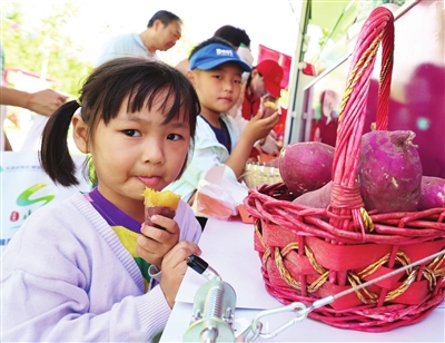 红瑶甘薯丰收,吸引游客前来品尝。 摄影 孙立伟 王志臣