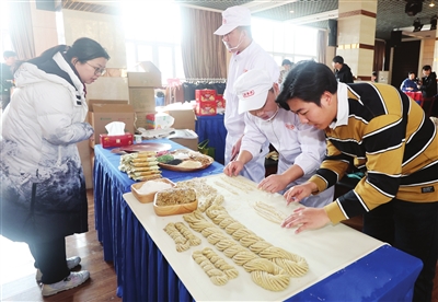 “三分紧、七分松,双手一提自然成……”活动现场,最受师生欢迎的当数互动体验。桂发祥十八街麻花总店生产车间线长王鑫的“摊位”前围满了师生,他边演示边指导师生上手体验,场面十分热闹。“一上午就有几十名老师和同学来体验麻花制作,大家参与热情很高。”王鑫表示。“桂发祥十八街麻花是‘津门三绝’之一,能亲身体验这项非遗技艺,我感觉很有意义。”体验麻花制作后,天津商业大学大一学生麻康琰兴奋地说。
