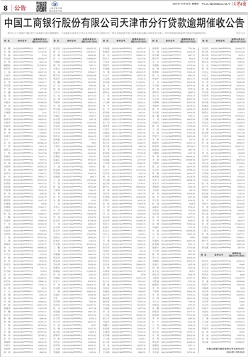 中国工商银行股份有限公司天津市分行贷款逾期催收公告