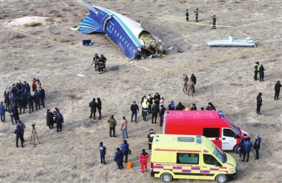 12月25日在哈萨克斯坦阿克套市附近拍摄的坠机现场。 新华社发
