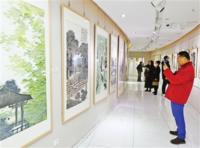 本报讯(记者 张帆 摄影 姚文生)日前,由城市画派主办,五大道拜石博物馆、湖北中广公路勘察设计院承办的“不止三人行”——柴博森、阚传好、万禹辰中国画作品展在民园文化广场拜石博物馆开幕。