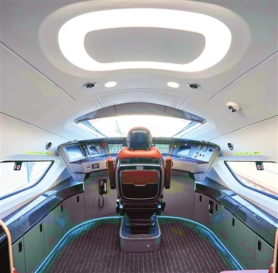 CR450动车组还配有智能监测、智能诊断系统,全列4000多个检测点实时收集轴温、压力等数据,做到自诊断、自恢复、自决策。
