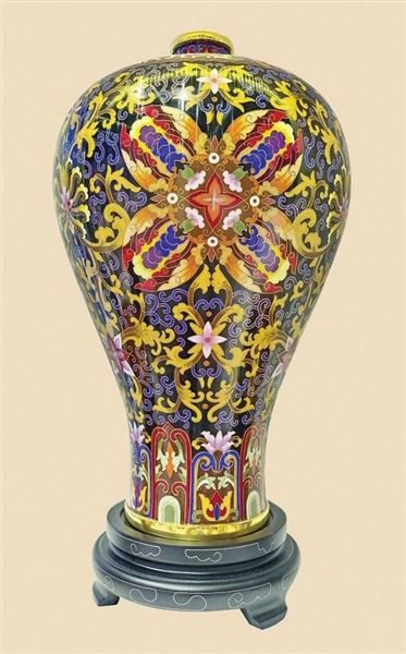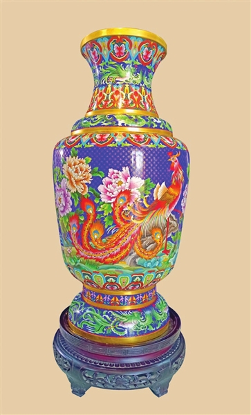 何爱莲:让我记忆最深刻的是一位香港客人定制的景泰蓝青花瓷纹龙瓶,他非常喜欢青花瓷和景泰蓝,有一次他去首都博物馆参观,看见了青花瓷纹龙瓶,就找到我希望能用景泰蓝的技艺将这件艺术品复刻出来。可是青花瓷的色调是以蓝白为主,用白色的釉料来遮盖底色较深的紫铜胎体是很有难度的。但我想既然客人信任我,不妨就大胆尝试一次,如果挑战成功了,对我们的技艺也是一种创新。
