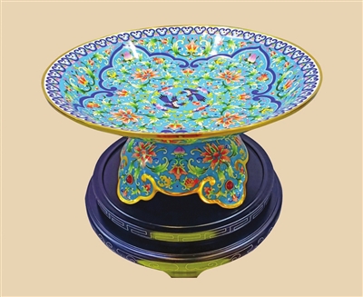 何爱莲:景泰蓝的制作工艺非常复杂,用料又很昂贵。景泰蓝整体制作下来大致分为七个主要步骤,即图案设计、制胎、掐丝、点蓝、烧蓝、磨光、镀金,这七大步骤中又可以分出108道工序,需要十几个人分工合作,制作时长最少也需要100天,失之毫厘,就将前功尽弃,因此对制作者的要求非常高,需要制作者有足够的耐心和细心。