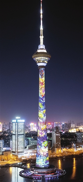 天塔跨年裸眼3D光影秀。