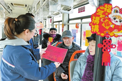 昨天,608路公交车上举行了一场特别的诗词鉴赏活动,乘客在车厢内享受流动的文化盛宴,欢庆新年到来。