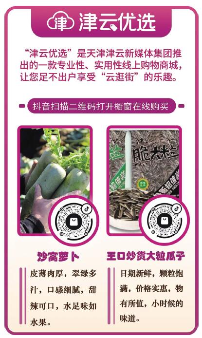 《天津日报》联合津云新媒体,带您上山采摘,奔赴田园,一路追寻天津乡村的大美风光与宝藏好物,从产品到风景再到风土人情,全方位展现新农村的新风貌,将山田间的美食带到您身边。