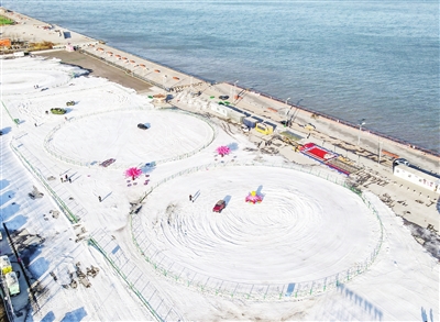 日前,天津东疆综保区打造的“海岸雪世界”冰雪主题乐园暨浪潮东疆冰雪嘉年华开园。园区坐落于东疆亲海音乐广场,覆雪面积8万平方米,建有长约200米、宽28米、双通道8滑道的超长冰滑梯和雪地漂移、雪地转转、雪地降速等十几个雪地项目,让游客在此面朝大海,享受冰雪世界。
