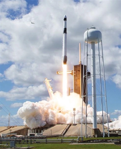 搭载“龙”飞船的“猎鹰9”火箭从美国佛罗里达州肯尼迪航天中心发射升空。 新华社发