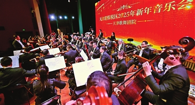 本报讯(记者 王洋 摄影 姚文生)昨晚,天津歌舞剧院管弦乐团奉献的2025年新年音乐会,在天津港保税区文化中心剧场奏响。