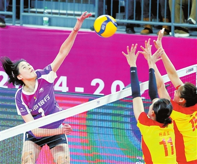 本报讯(记者 梁斌 摄影 谢晨)在昨晚进行的女排超级联赛A级季后赛第一阶段第3轮比赛中,天津渤海银行女排客场3:0战胜实力不俗的山东女排,取得3连胜,3战全胜积9分位列D组头名,3局比分为25:20、25:23和25:16。1月11日15时30分,天津队将在A级季后赛第4轮比赛中客场挑战辽宁队。