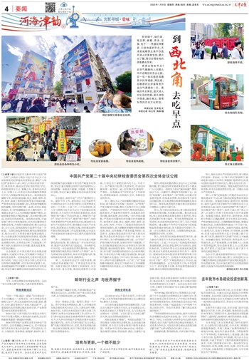来西北角吃早点!在热气腾腾的人间烟火中开启难忘的舌尖之旅,在一饮一食间感受深藏其中的幸福感、满足感,在醇厚的天津滋味里开启元气满满的一天。美味的早点背后,是天津人对生活的热爱,是天津依河傍海、融合南北、荟萃东西的历史文化积淀。本报记者 仇宇浩/文