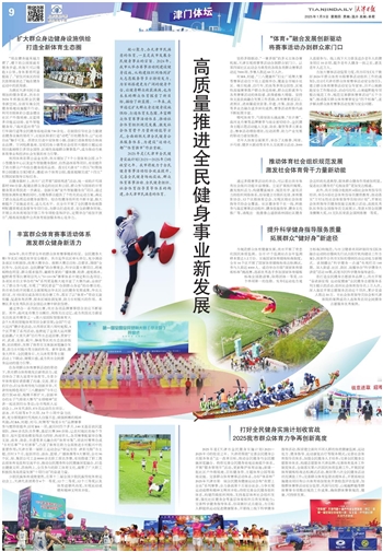 2025年是《天津市全民健身实施计划(2021—2025年)》的收官之年。我市将致力于全民健身赛事活动综合效益提升,完善全民健身场地设施、群众体育赛事活动、全民健身组织、社会体育指导员等体系的构建,办天津市民满意的体育。