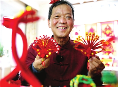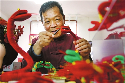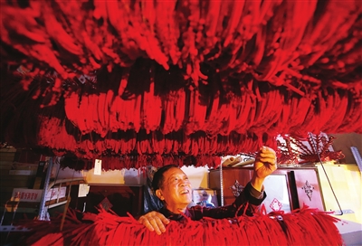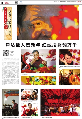春节,天津大姑娘、小媳妇头上那朵红绒花,是对来年美好生活的期盼。