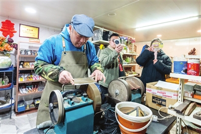 “金刀银刀不如自己惯使的老刀,咱天津人讲究的是实用,你看咱这刀磨得又亮又快,很多主顾是慕名而来!”1月9日,“瓣瓣同心京津冀 欢欢喜喜过大年”主题宣传联合采访团来到河北区王串场街幸福道商业街,在导游“小修”“小补”带领下,探秘火出圈的“修补巷”。在李师傅刀具专营店里,店主李师傅热情地招呼着记者团的成员,“虽然店不大,利润也很微薄,但这是给老百姓办实事,得坚持。”
