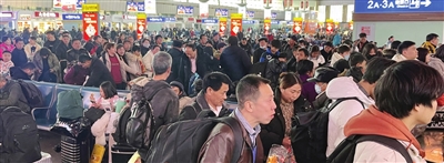 昨天中午,记者来到天津站二楼高架候车厅看到,旅客们或就座候车,或排队进站,春运首日秩序井然。车站还增派了工作人员,爱心候车专区、母婴哺乳室等服务专区也都“虚位以待”。